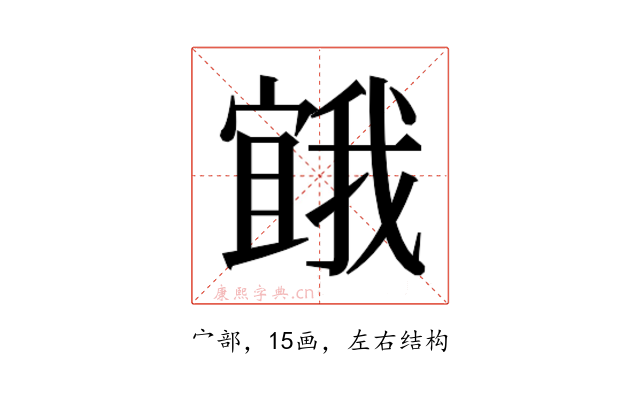 〔𭔒〕字是左右结构,可拆字为“宜、我”。