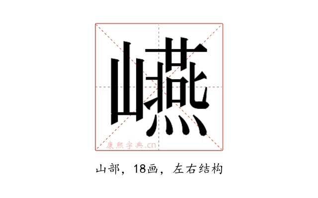〔𭗬〕字拼音是(yān),部首是山部,总笔画是18画。