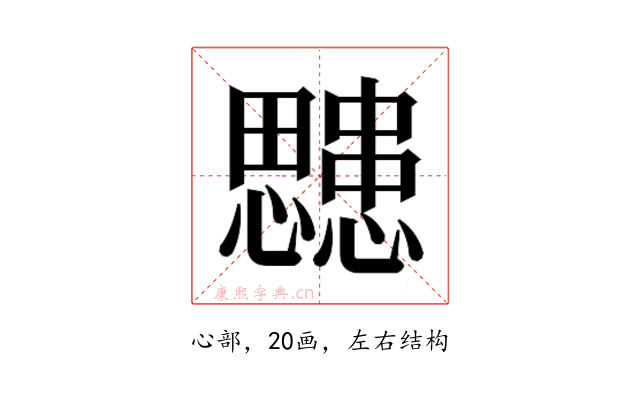 〔𭟜〕字是左右结构,可拆字为“思、患”。