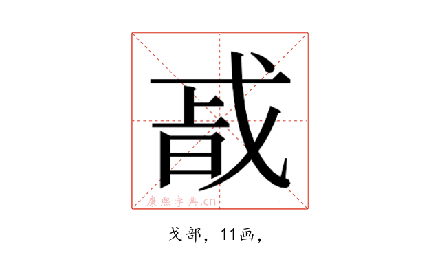 〔𭟴〕字部首是戈部,总笔画是11画。