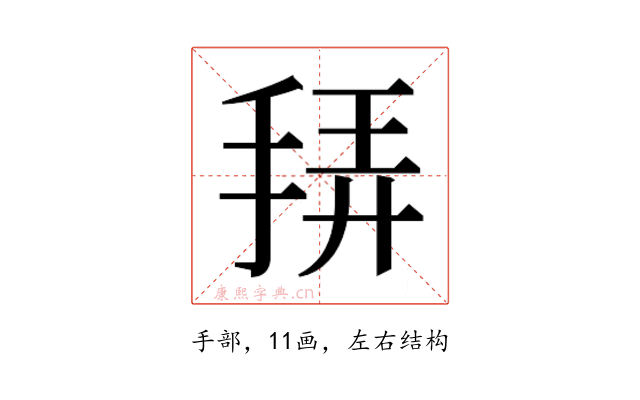 〔𭠴〕字是左右结构,可拆字为“手、弄”。