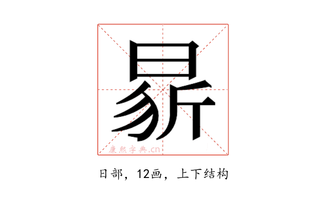 〔𭦢〕字是上下结构,可拆字为“日、丿、𰀪、斤”。