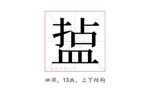 〔𭾄〕字部首是皿部,总笔画是13画。