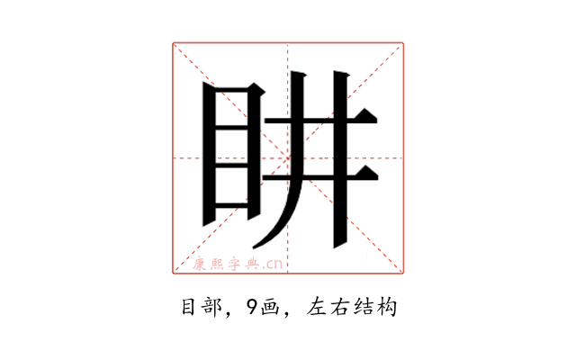 〔𭾠〕字是左右结构,可拆字为“目、井”。