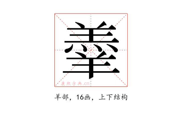 〔𮊱〕字部首是羊部,总笔画是16画。