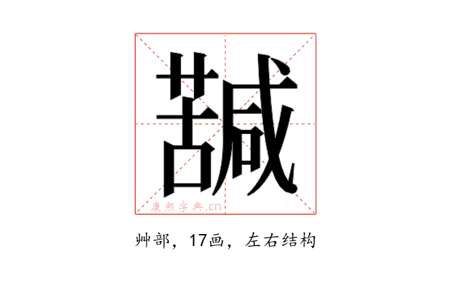 〔𮒀〕字是左右结构,可拆字为“苦、咸”。