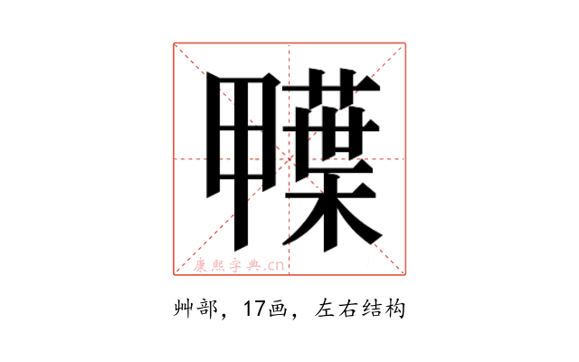 〔𮒅〕字是左右结构,可拆字为“甲、葉”。