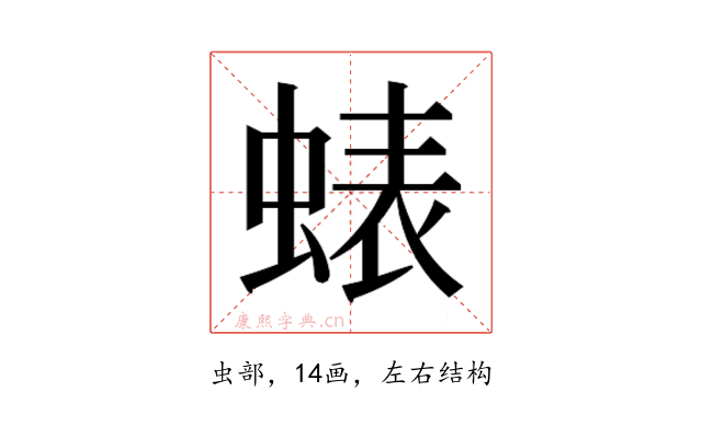 〔𮔘〕字部首是虫部,总笔画是14画。