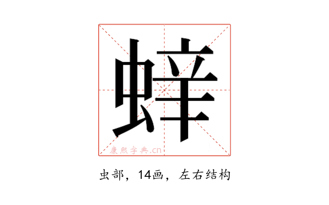 〔𮔝〕字部首是虫部,总笔画是14画。