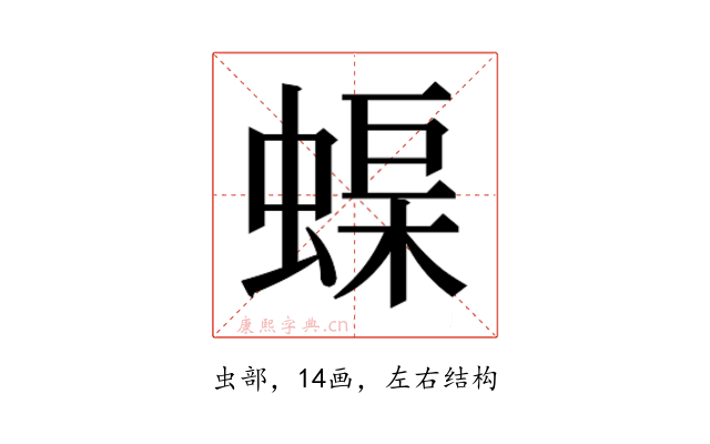 〔𮔟〕字部首是虫部,总笔画是14画。