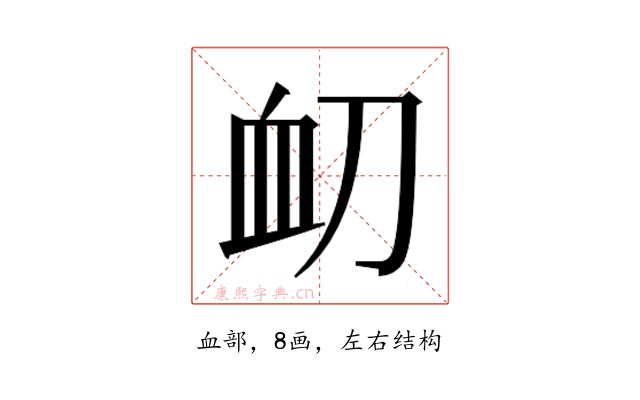 𮕝〕字是左右结构,可拆字为“血、刀”。