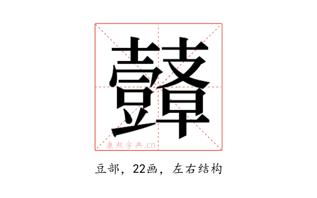 〔𮙙〕字部首是豆部,总笔画是22画。