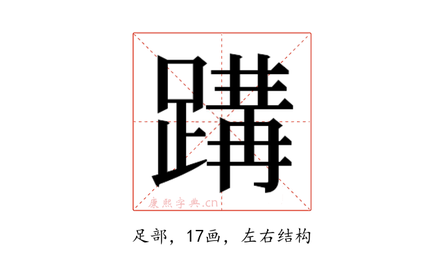 〔𮜂〕字部首是足部,总笔画是17画。