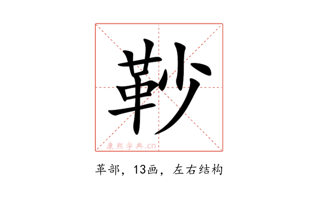 〔䩖〕字是多音字,拼音是(shā、suō),部首是革部,总笔画是13画。