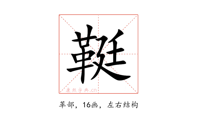 〔䩠〕字是左右结构,可拆字为“革、廷”。