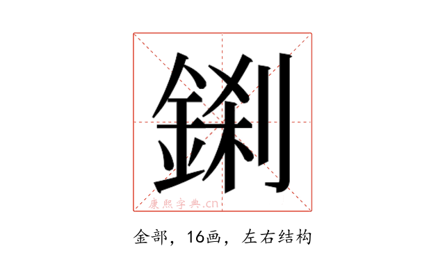 〔𮢎〕字是左右结构,可拆字为“金、刹”或“釒、刹”。