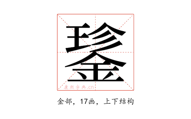 〔𮢝〕字是上下结构,可拆字为“珍、金”。