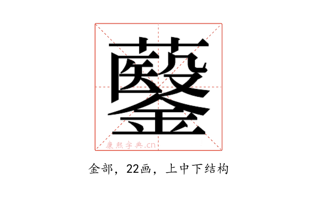 〔𮣡〕字部首是金部,总笔画是22画。