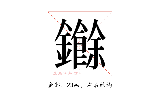 〔𮣧〕字是左右结构,可拆字为“金、餘”或“釒、餘”。