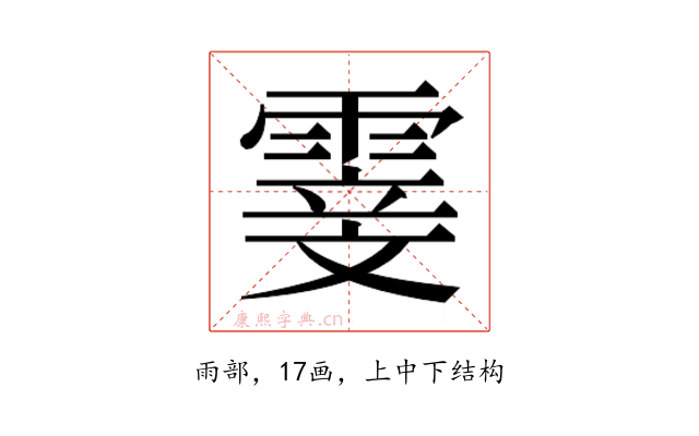 〔𮦢〕字部首是雨部,总笔画是17画。