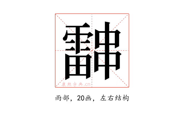 〔𮦰〕字部首是雨部,总笔画是20画。
