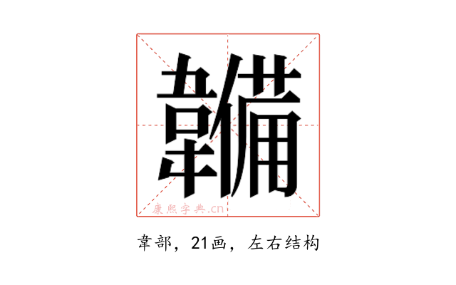 〔𮧳〕字部首是韋部,总笔画是21画。