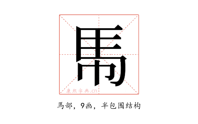 〔𮩵〕字部首是馬部,总笔画是9画。