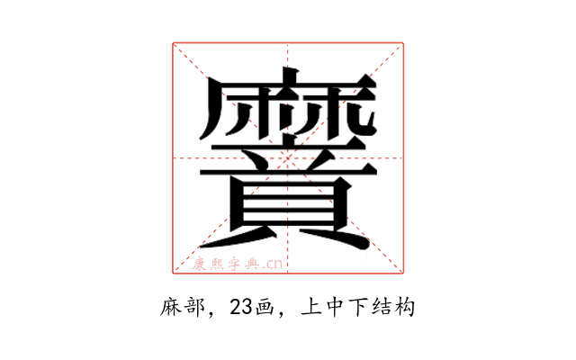 〔𮮌〕字部首是麻部,总笔画是23画。
