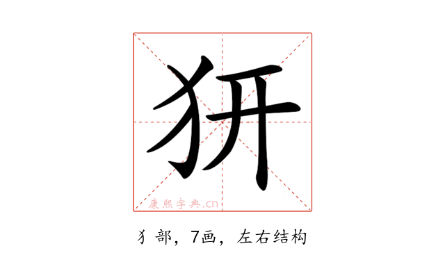 𤜵〕字是左右结构,可拆字为“犭、开”。