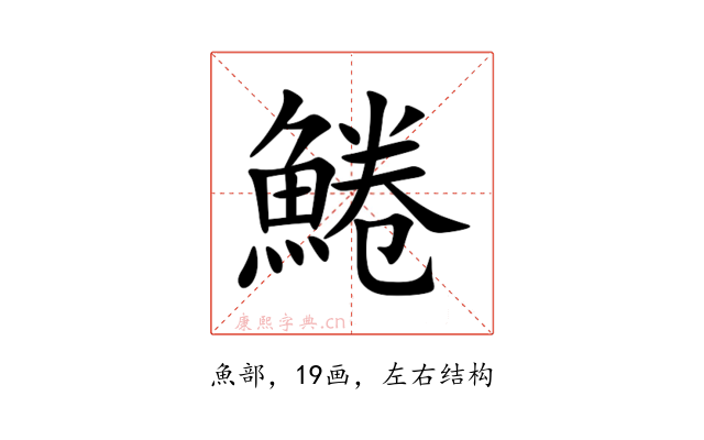 〔䱧〕字是左右结构,可拆字为“魚、卷”。