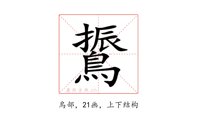 〔䳲〕字是上下结构,可拆字为“振、鳥”。