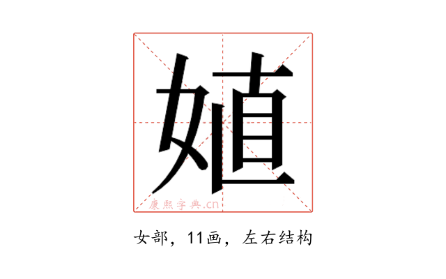〔𰌈〕字是左右结构,可拆字为“女、直”。