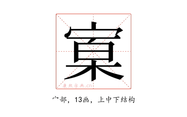 〔𰍒〕字部首是宀部,总笔画是13画。