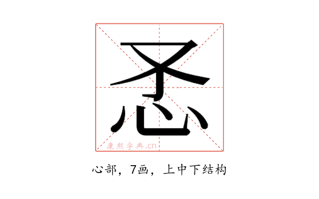 〔𰑀〕字是上中下结构,可拆字为“又、亅、心”。