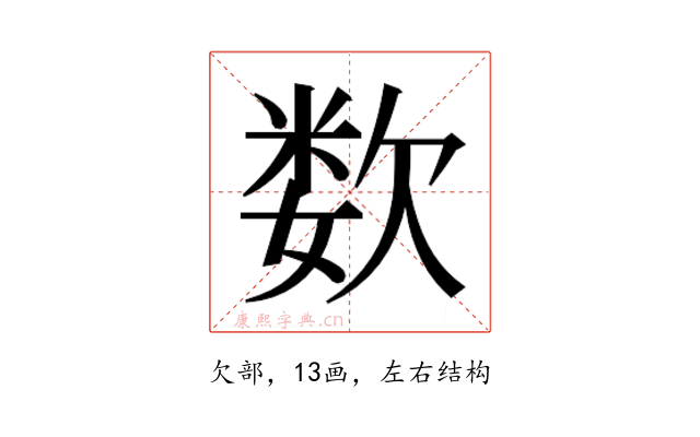 〔𰙕〕字部首是欠部,总笔画是13画。