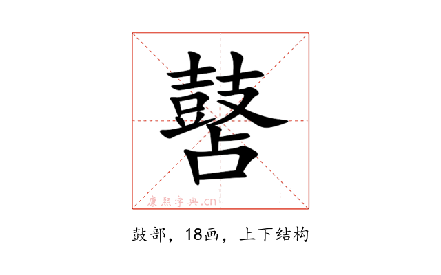 纠错〔䵿〕字拼音是(tiè),部首是鼓部,总笔画是18画。