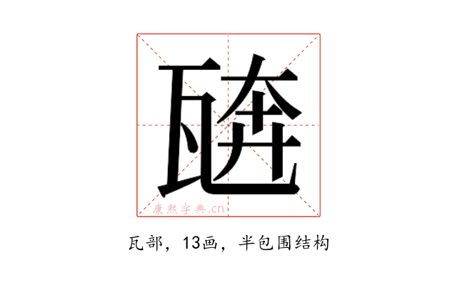 〔𰢣〕字部首是瓦部,总笔画是13画。