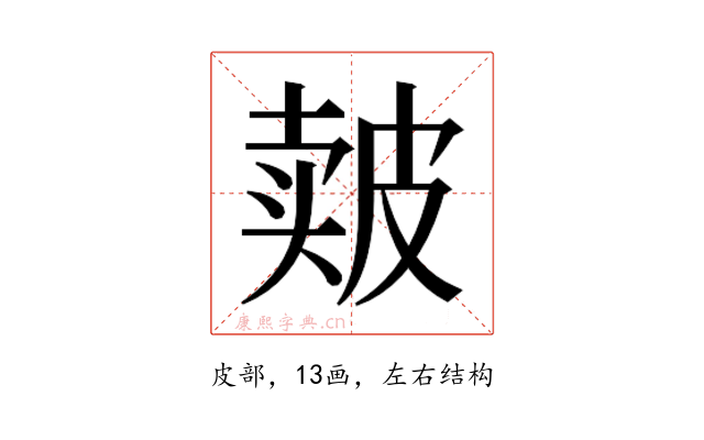 〔𰤬〕字部首是皮部,总笔画是13画。