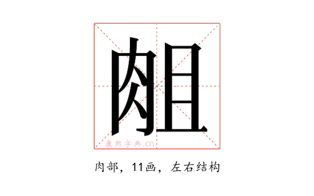 〔𰮘〕字是左右结构,可拆字为“肉、且”。