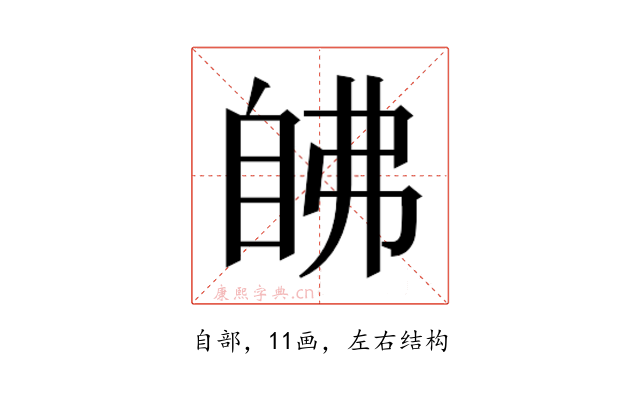 〔𰯵〕字是左右结构,可拆字为“自、弗”。