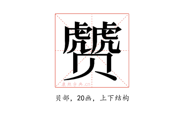 〔𰷮〕字是上下结构,可拆字为“虤、贝”。
