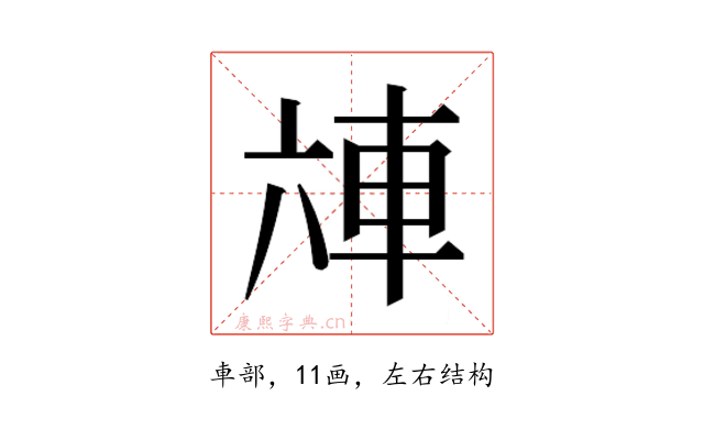 〔𰹌〕字是左右结构,可拆字为“六、車”。