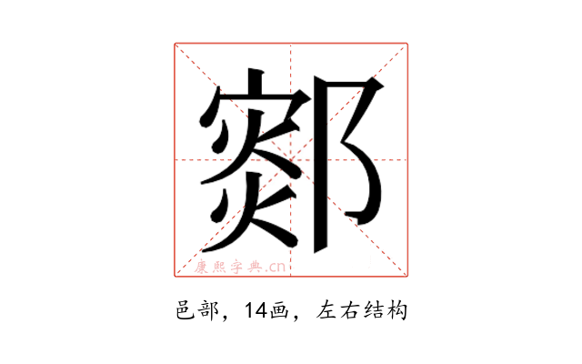 〔𰻻〕字部首是邑部,总笔画是14画。