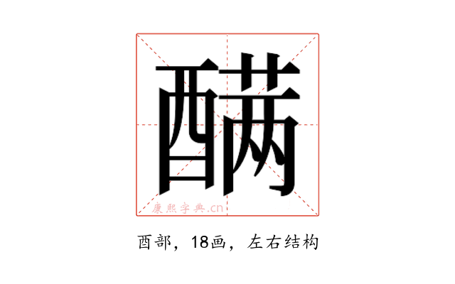 〔𰼑〕字部首是酉部,总笔画是18画。