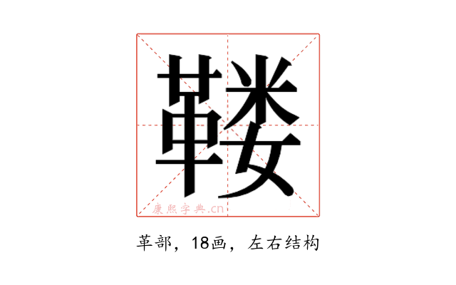 〔𱁺〕字是左右结构,可拆字为“革、娄”。
