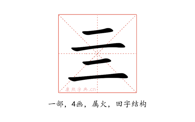 〔亖〕字是田字结构,四叠字 (其他四叠字),可拆字为“二、二”。