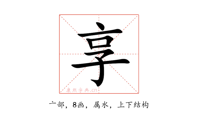 〔享〕字是上下结构,可拆字为“亠、𠯂”,五行属水。