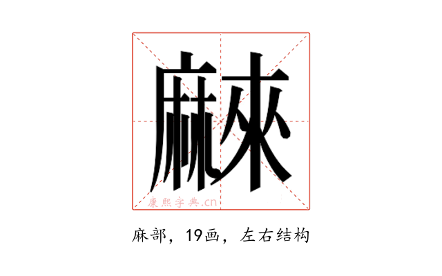 〔𱋰〕字是左右结构,可拆字为“麻、來”。