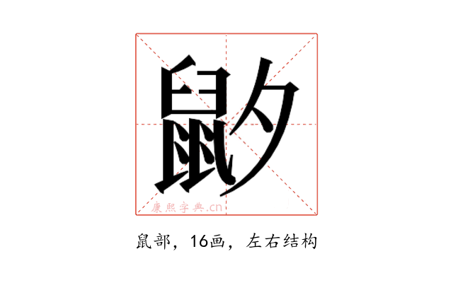 〔𱌍〕字是左右结构,可拆字为“鼠、夕”。