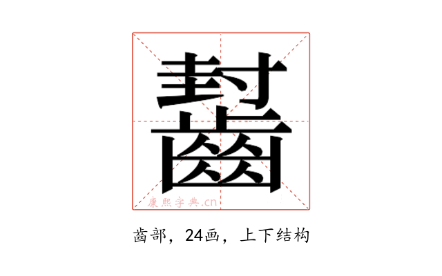 〔𱌟〕字部首是齒部,总笔画是24画。